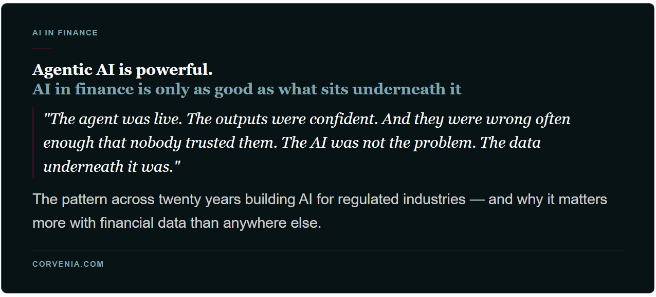 During the concept validation phase of Corvenia , I spoke to a CFO who was excited. His board had just approved a budget for an AI agent that would run across their financial data. Autonomous analysis. Real-time variance commentary. Alerts before problems surface in the numbers.